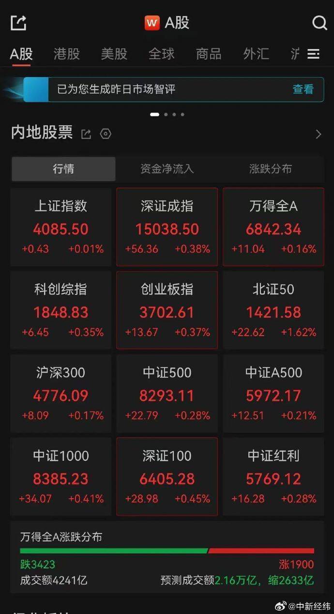 4月22日,A股三大指数早盘低开,随后集体翻红。截至发稿,上证指数涨0.01%,深证成指涨0.38%,创业板指涨0.37%。全市超3400只个股飘绿。