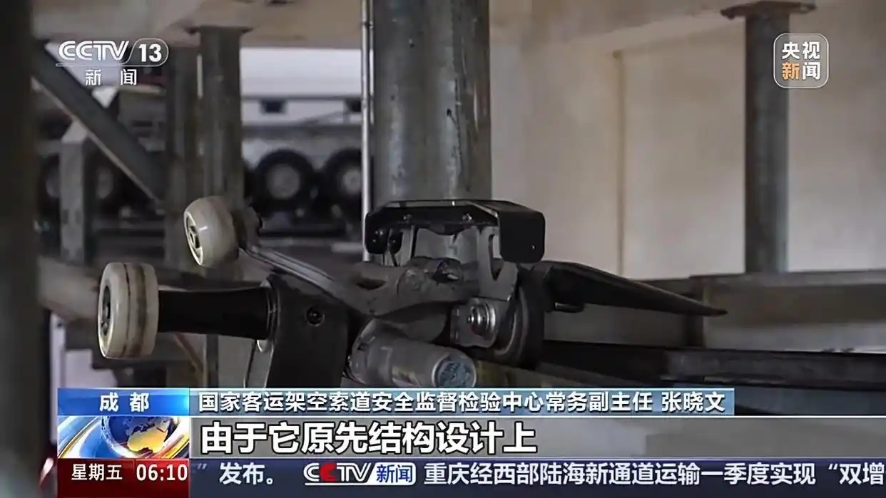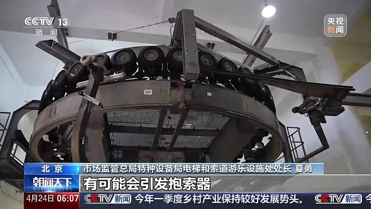 市场监管总局特种设备局电梯和索道游乐设施处处长 夏勇:我们也是前期发现,这家公司在用的部分客运索道,在夏季突发大风的极端天气情况之下。有可能会引发抱索器和支架上的零部件发生碰撞,而造成吊箱脱落的风险。虽然没有引发事故,但是属于潜在的不安全事件,认为还是应当实施召回。