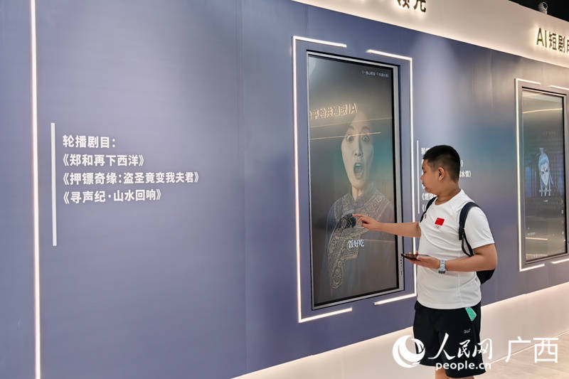 市民游客观看AI微短剧。人民网 庞惠文摄