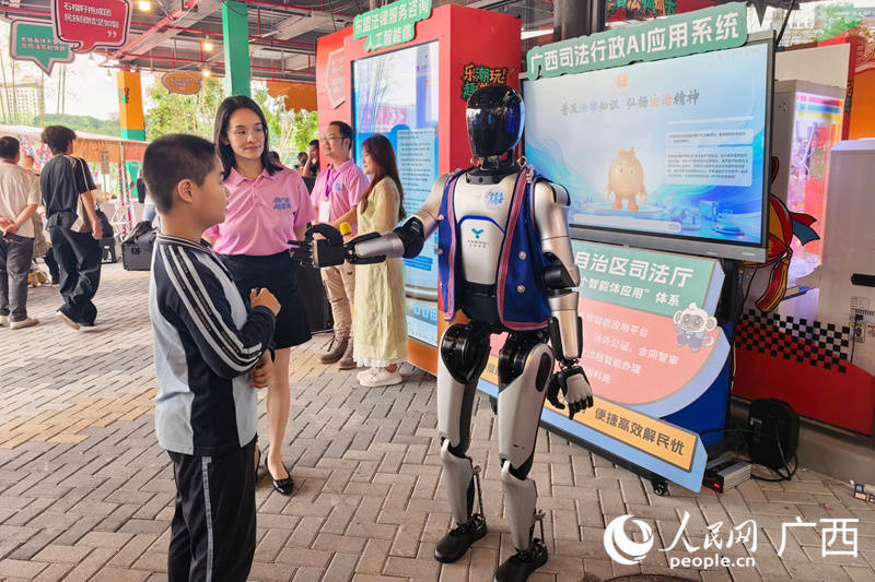 在司法体验区,普法数字人“壮壮”成了市民的贴心法律顾问,面对各类法律疑问,它都能秒速应答、清晰易懂。不仅能精准解答法律问题,还能即兴创作普法山歌、自动生成普法漫画,用接地气、好记好听的方式,把法治知识送到群众身边。